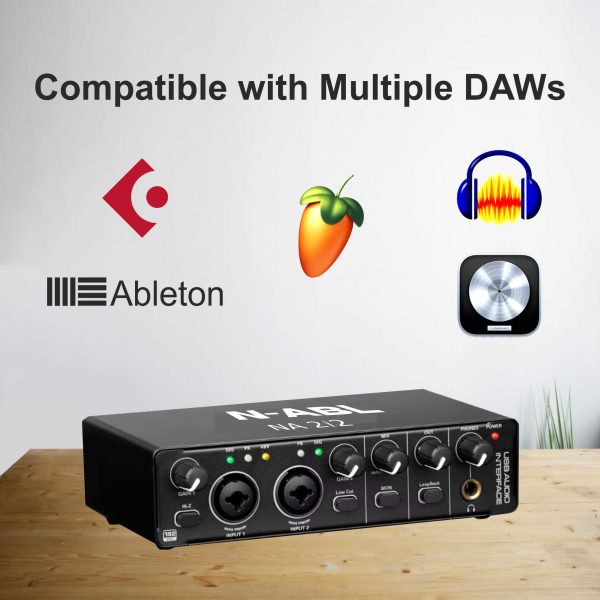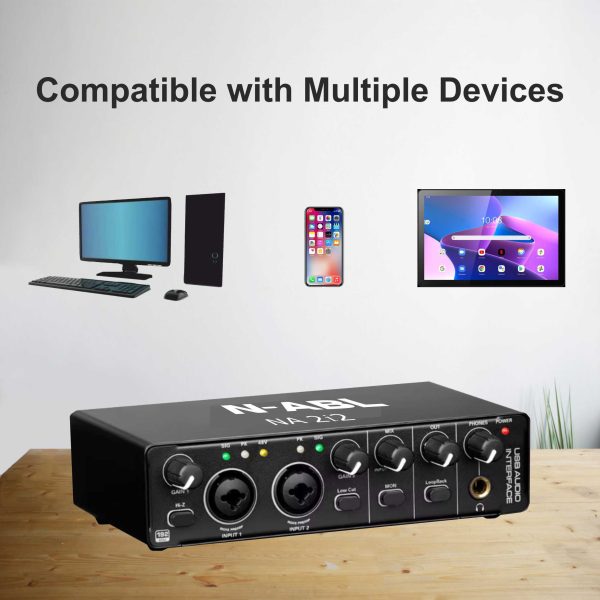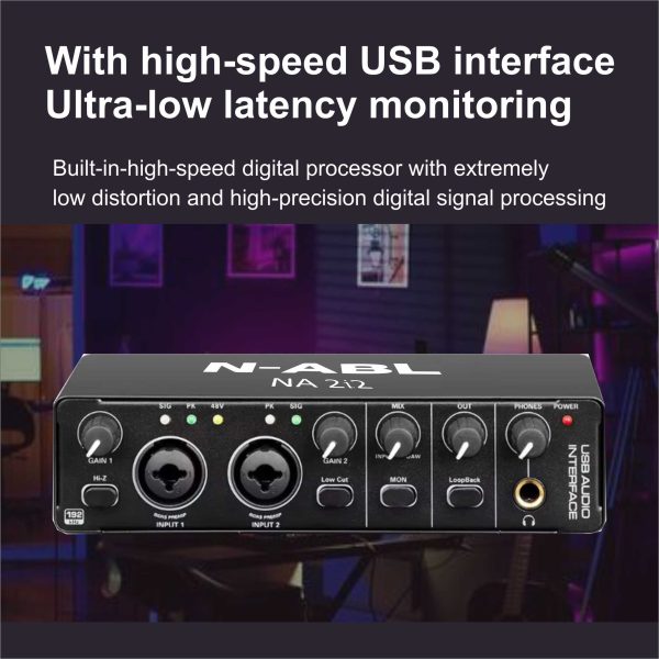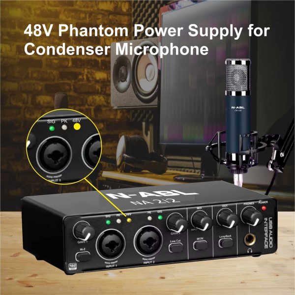 N-ABL NA 2i2 Audio Interface | Premium Mic Pre-Amps | 48V Phantom Power Support | 24-bit/192 KHz High Fidelity Recording | XLR/MIC/LINE Inputs | Plug and Play-No Drivers |